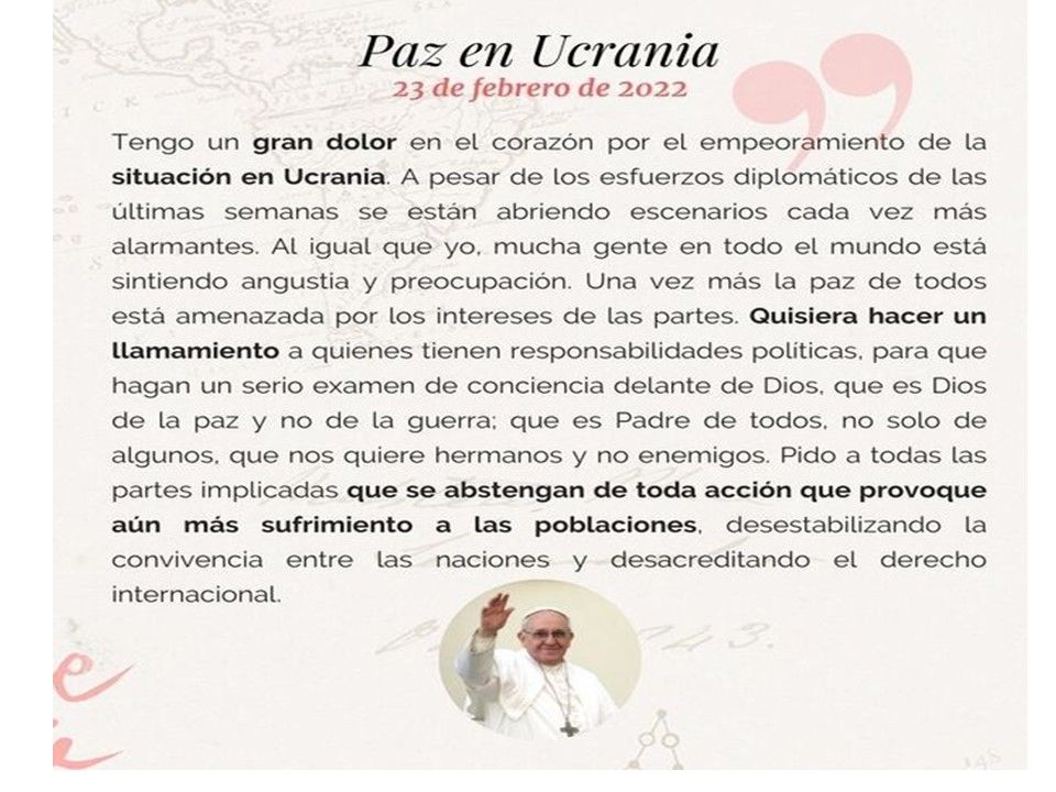 De modo especial, queremos que nuestro corazón de paz llegue a nuestros hermanos de Ucrania.
