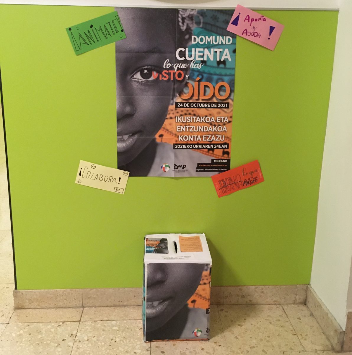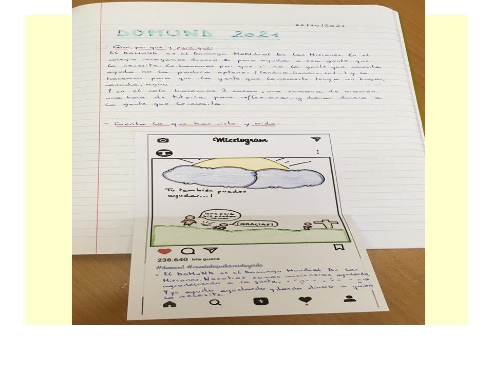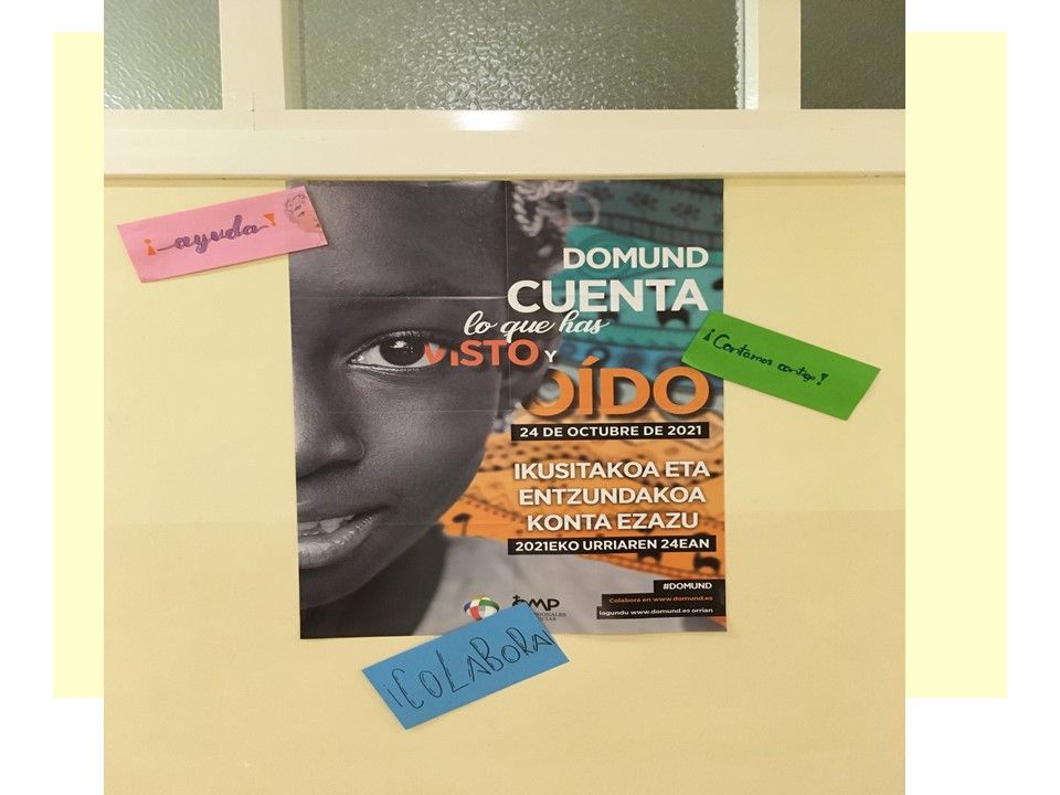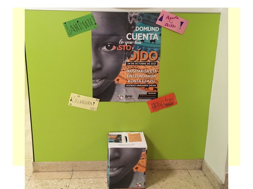 Para ello, en los Buenos Días hemos intentado conocer mejor qué es el DOMUND, reflexionar sobre el mismo y rezar. En la hora de Tutoría semanal, el objetivo ha sido trabajar el lema de este año y, con ello, descubrir la presencia de Dios en nuestro día a día y la alegría de contarlo. Y, por último, la Recogida de donativos, que, como habéis podido leer ha ascendido a 553,50 €.